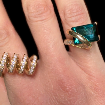 Inspired by her own curly hair and the infinite loops that represent memory, the Curl Collection explores the concept of juxtaposition: blending hard and soft, curved and sharp, dark and light, complex and precise. Through these pieces of wearable art, Sardwell encourages the wearer to navigate the balance between freedom and structure, stillness and transformation, allowing them to reveal their personal story from multiple perspectives.